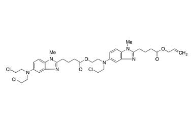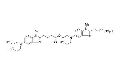An alkylating agent with chemical formula 1Hbenzimidazole-2-butanoic acid, 5-[bis(2-chloroethyl)amino]-1 methyl-, monohydrochloride. It contains a mechlorethamine group and a benzimidazole heterocyclic ring with a butyric acid substituent. It is used for the treatment of chronic lymphocytic leukemia and lymphomas. Reference standards of Bendamustine Hydrochloride API, and its pharmacopeial, non pharmacopeial impurities, and stable isotopes are listed below.